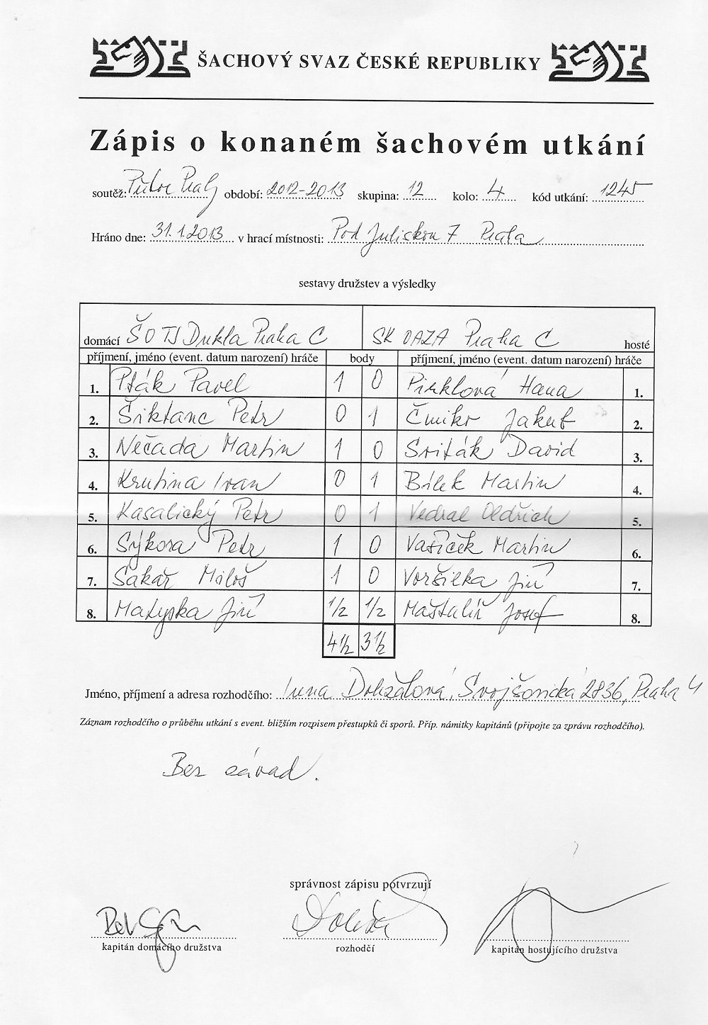 12.3. SK Lisa A - SK OAZA Praha C 4:4 reportáž